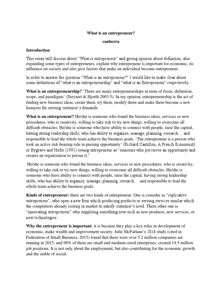 Trending Being An Entrepreneur Essay This student essay consists of approximately 4 pages of analysis of qualities needed to be an entrepreneur. Being An Entrepreneur Essay : Essay sample check writing quality.