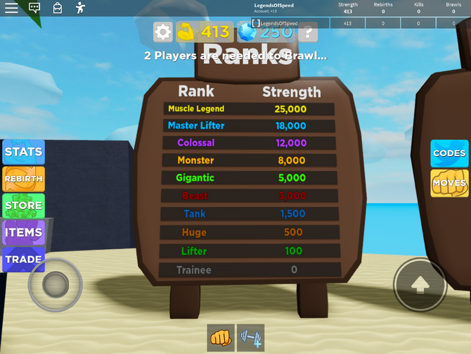 Use these currencies to purchase more moves, get additional items, obtain pets, and get stronger to become the ultimate muscle legend!