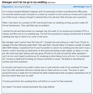Bride To Be Told To Change Her Wedding Date By Boss 9honey - My wedding is coming up in october this year and i need 5 weeks (25 working days) of leave for completing all the wedding rituals, honeymoon, etc.